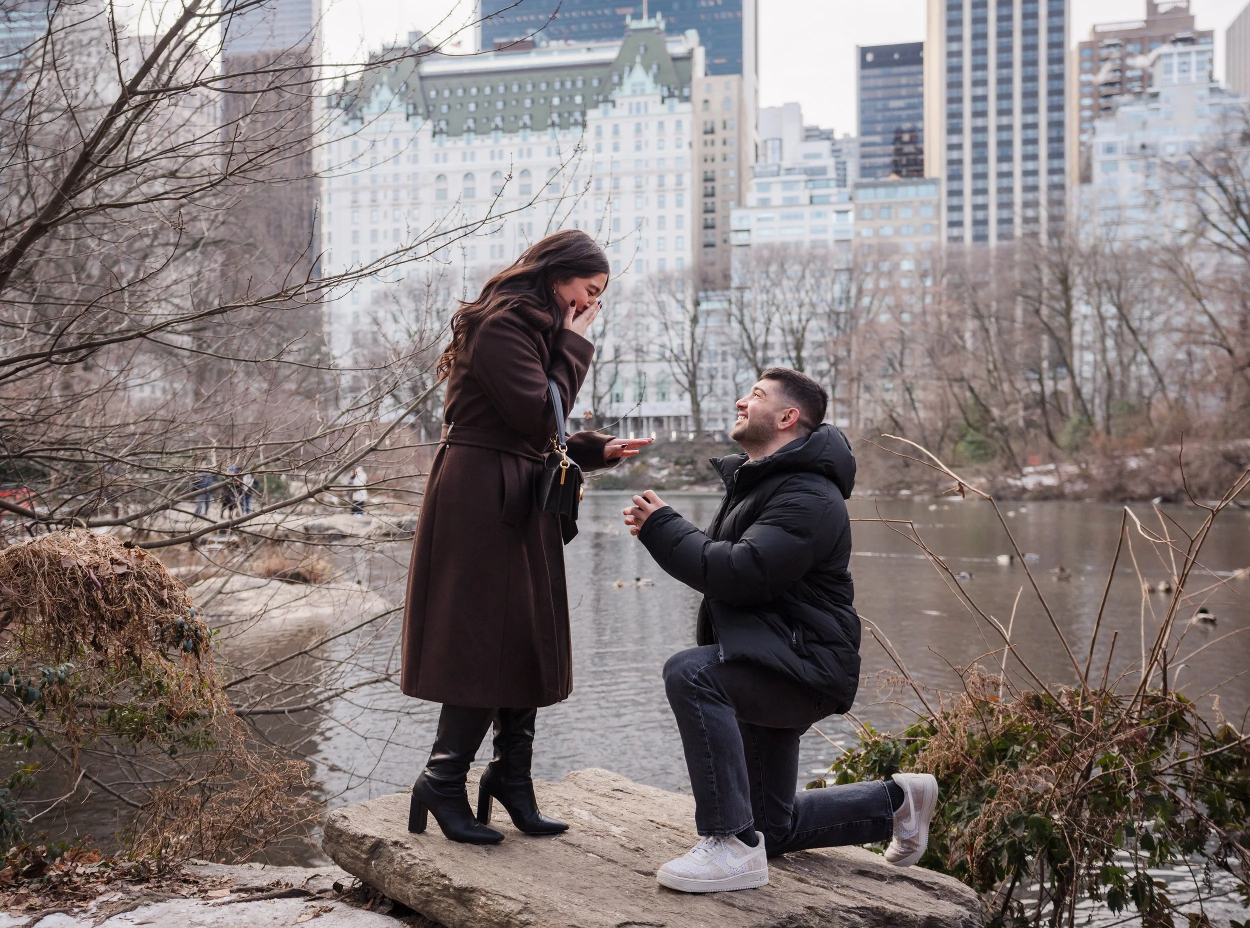 The Pond can get very crowded as the day progresses, so mornings are ideal if you want any intimacy. I’ve photographed proposals as late in the morning as 9:30 AM on a winter weekend (post-holiday season) without issue. If you want something more private, including photos to yourselves on the incredible Gapstow Bridge, I would recommend coming much earlier than that.